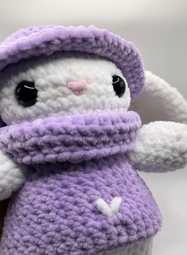 Ich bin Luna, dein kleines Kuschelhäschen mit flauschigem Hut und weichem Schal . Ich liebe es zu kuscheln, zu begleiten und dein Herz zu wärmen 💜. Mein weiches Plüschgarn macht mich besonders gemütlich, und ich bin sicher für Babys 👶 und Kinder 🧒.