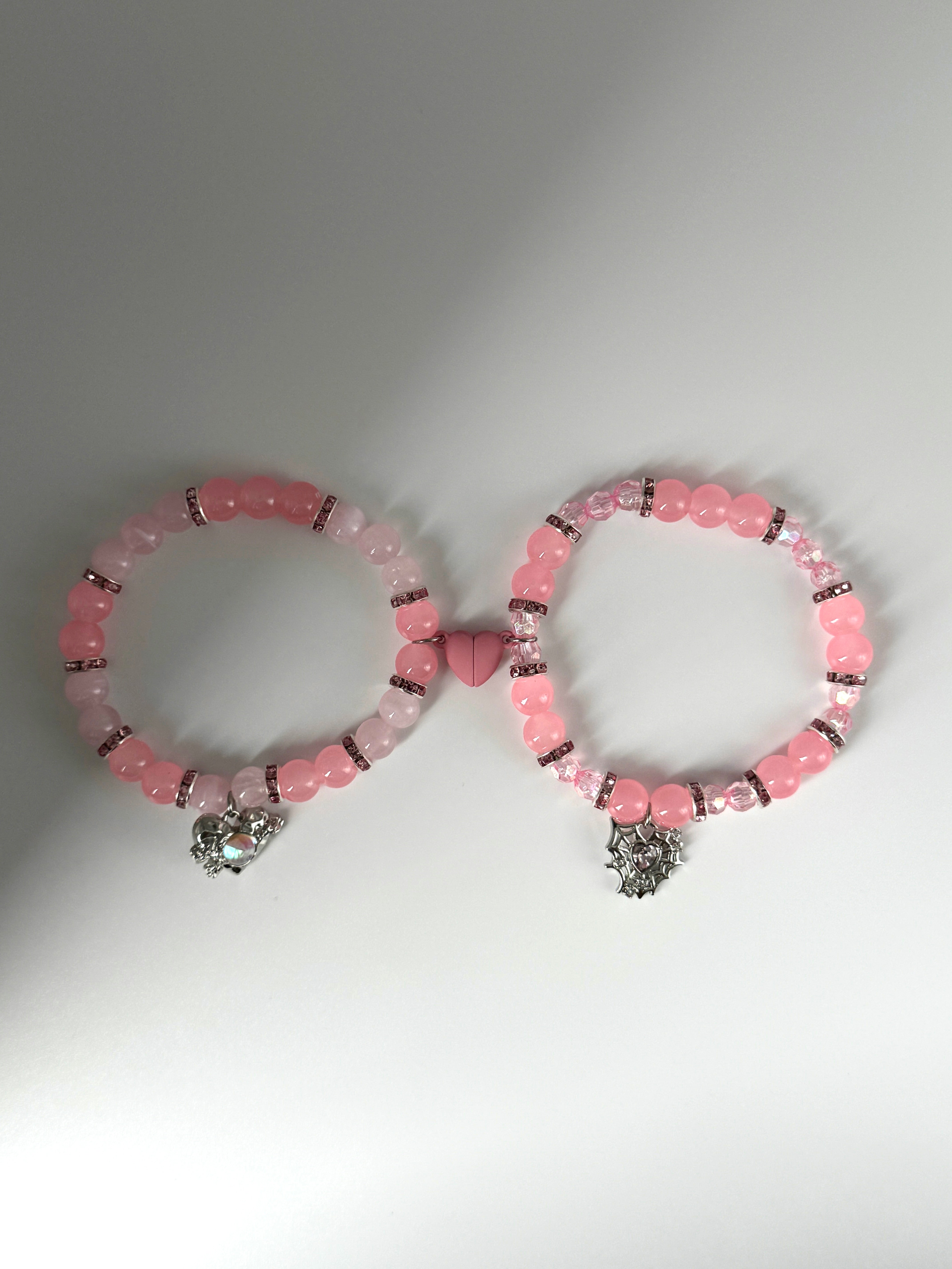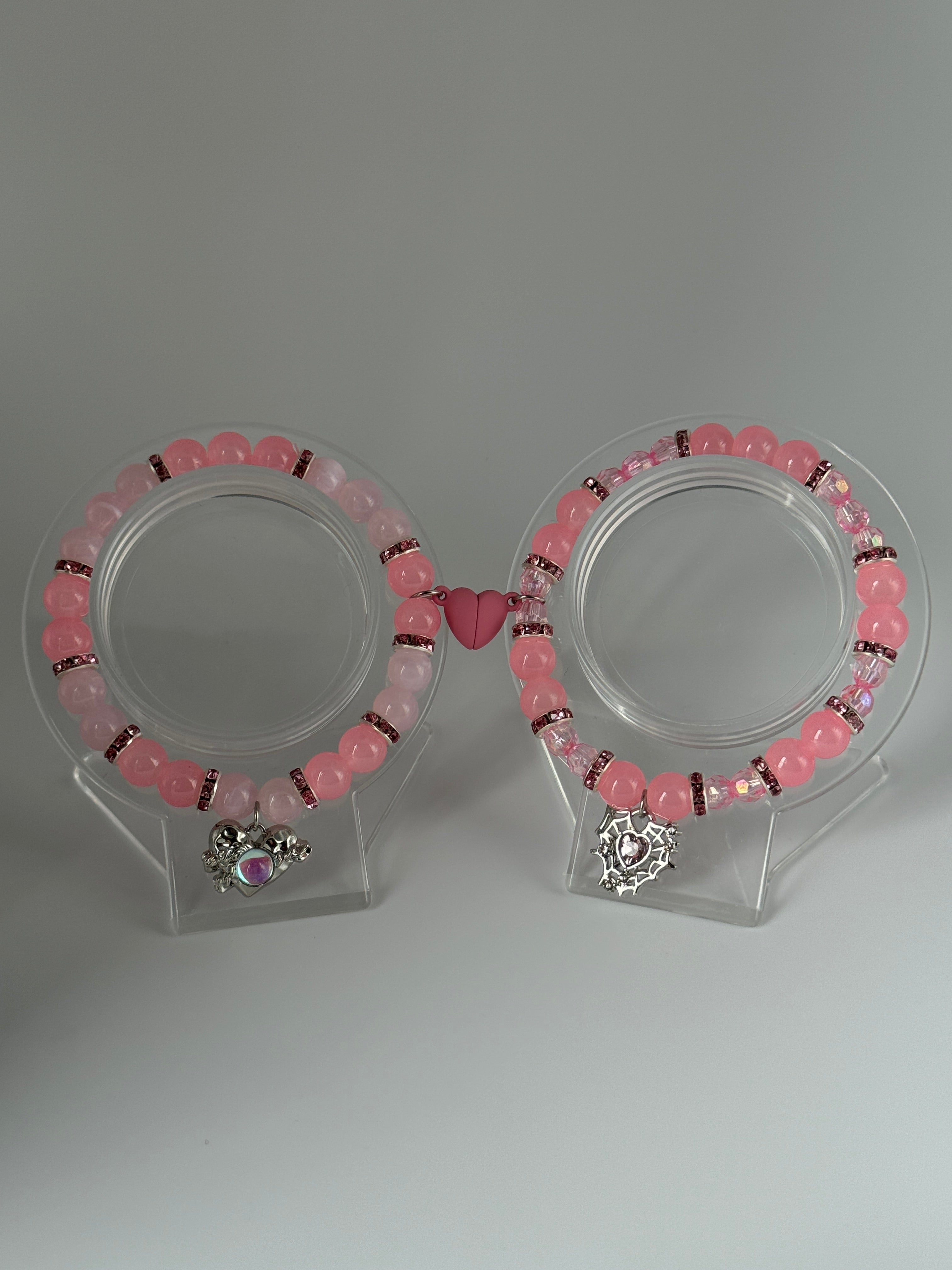 ♡Verbindung: Die Armbänder sind durch ein rosafarbenes Herz verbunden, das die tiefe Verbindung und Zuneigung zwischen zwei Freunden symbolisiert.